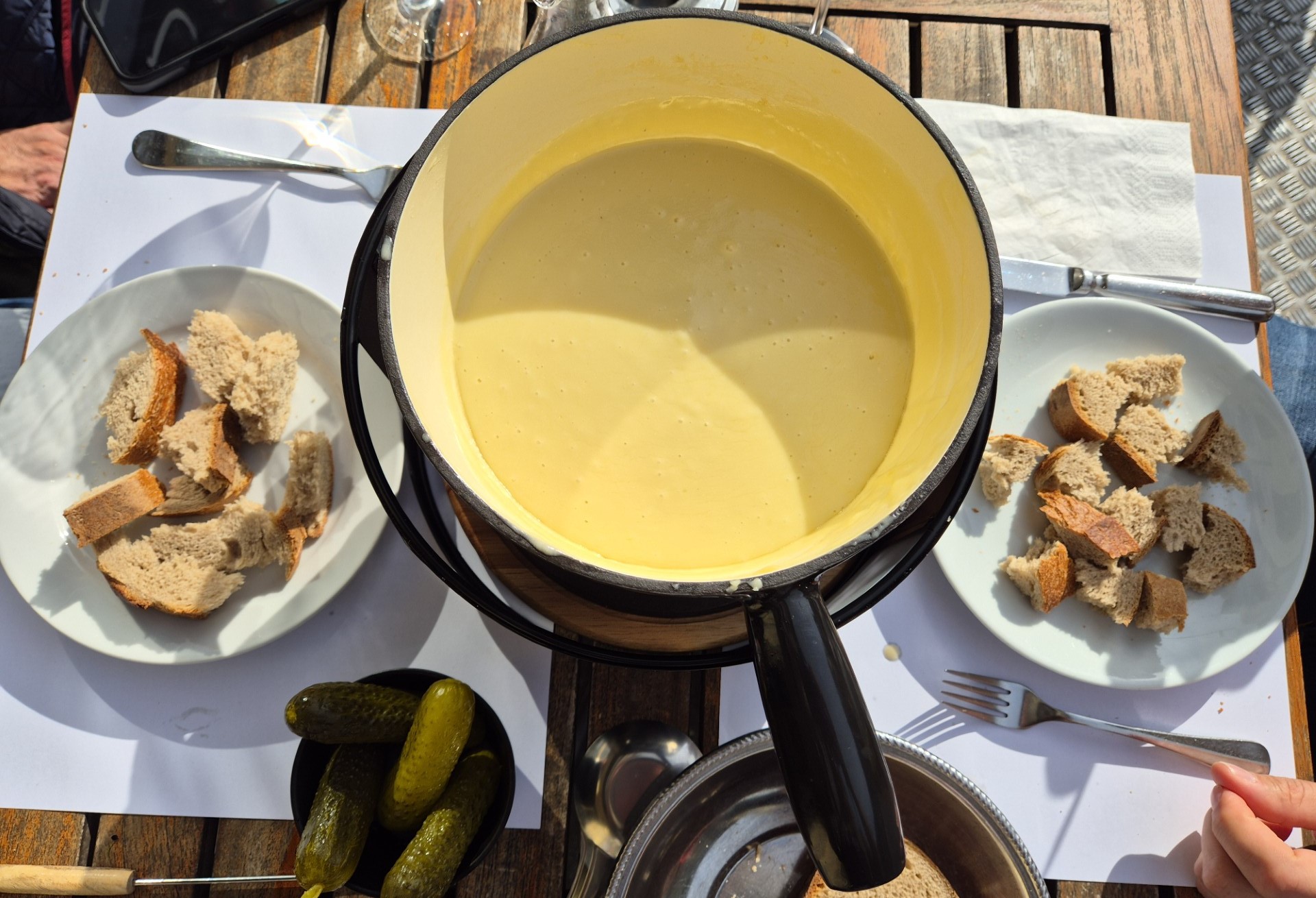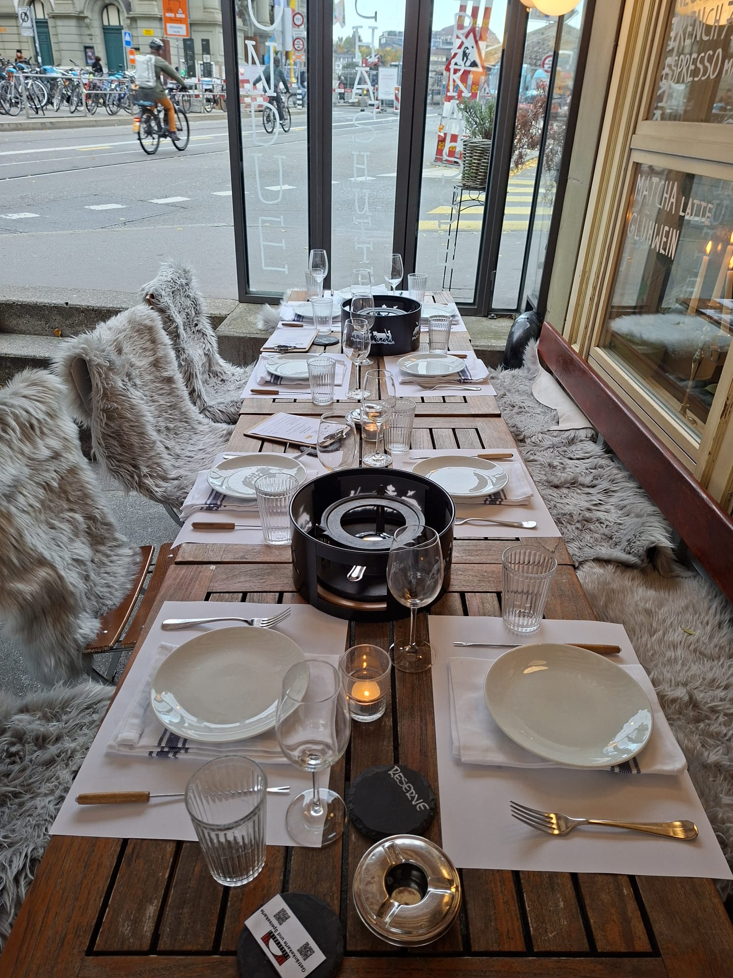 Geniesse den Herbst auf unserer Terrasse mit einem feinen Käse Fondue, begleitet mit ausgewählten Weinen.